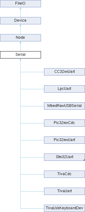 Implemented in LpcUart, MbedRawUSBSerial, Pic32mxUart, Pic32mxCdc, Stm32Uart, CC32xxUart, TivaCdc, TivaUart, and TivaUsbKeyboardDev.