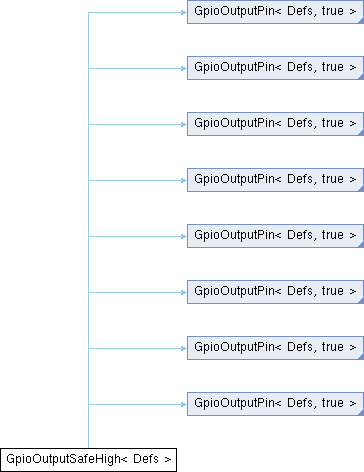 Static Public Member Functions inherited from GpioOutputPin< Defs, true > | |